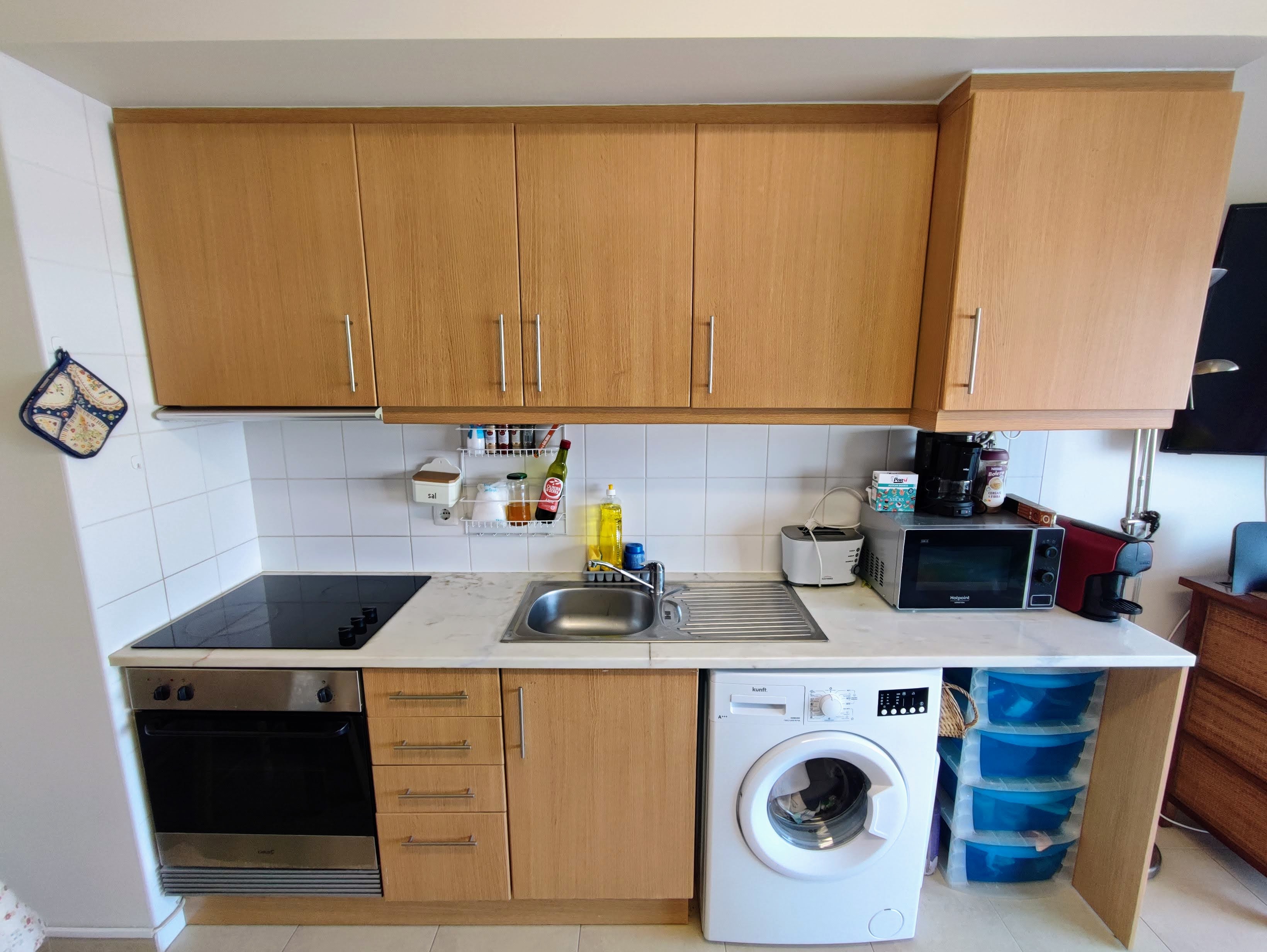 Luminoso apartamento T1 em condomínio fechado com piscina e lugar de garagem. Apartamento com boas áreas, cozinha mobilada e equipada, quarto com roupeiro embutido e pavimento flutuante, hall de entrada com roupeiro embutido e varanda espaçosa com vista para o Rio Arade. Todas as divisões com ar condicionado.